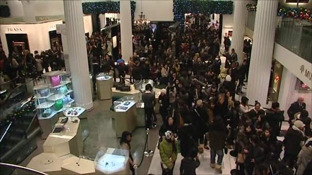 During the three week long freeze leading up to Christmas, shops were so deserted that two assistants would jump up to help you as soon as you darkened the doorway. No assistants around in sight amid the current feedling frenzy, where shops unloaded their goods at fire-sale prices.